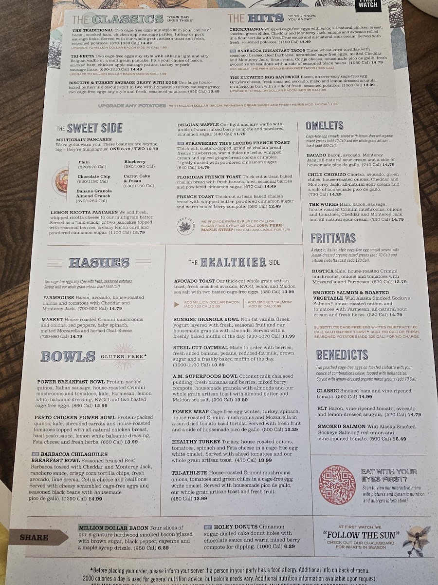 At First Watch, breakfast is an experience, not just a meal. Located in Orlando, Florida, this vibrant eatery is dedicated to serving wholesome, fresh dishes that awaken the senses. Their menu features delightful options such as the Bacado Omelet, with savory bacon and creamy avocado topped with housemade pico de gallo, and the Morning Market Veg Omelet, celebrating fresh, roasted vegetables.